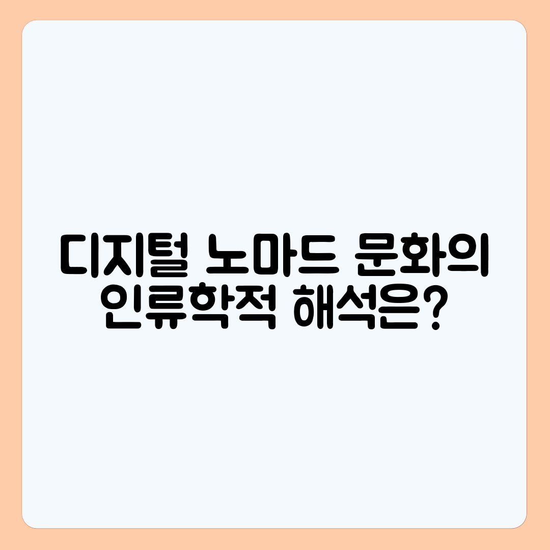최근 '디지털 노마드'라는 용어는 사람들 입에 자주 오릅니다. 이들은 인터넷이 가능한 공간에서 자유롭게 일하며, 전통적인 사무실 환경을 벗어나 새로운 삶의 방식을 추구합니다. 그러나 이러한 변화가 단순히 일하는 방식의 변혁에 그치지 않고, 사회에 어떤 인류학적 영향을 미치는지 깊은 고민이 필요합니다. 여러분도 이런 고민을 하고 계신가요? 디지털 노마드 문화가 가져오는 사회적 변동을 이해하고 해석하는 방법은 무엇일까요?